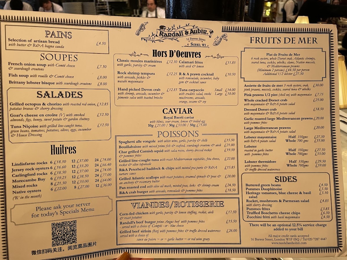 Welcome to Randall & Aubin, a gem nestled in the heart of London at 16 Brewer St, where the ambiance is as inviting as the exquisite seafood served. Renowned for its dedication to the finest British ingredients, Randall & Aubin offers a dining experience that seamlessly blends casual charm with culinary excellence.
